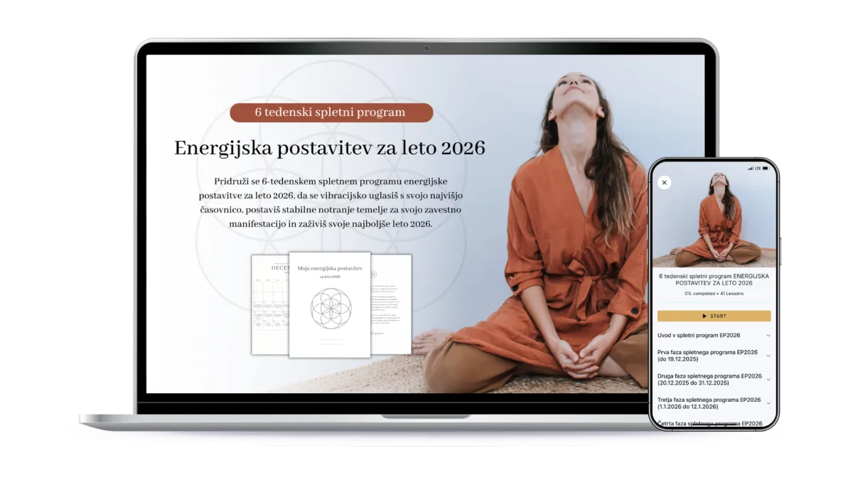 6 tedenski spletni program je namenjen celostni energijski pripravi na leto 2026. Vključuje različna praktična orodja s katerimi preobraziš svoje fizično, čustveno in mentalno telo, da se uglasiš s svojo najvišjo časovnico leta 2026.